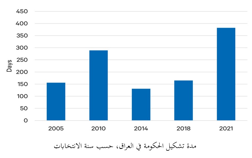 نظريًا، يحدد دستور العراق جدولًا زمنيًا واضحًا لتشكيل الحكومة بعد الانتخابات. عمليًا، تصبح كل خطوة فرصة للكتل السياسية للحصول على تنازلات، وتبادل المناصب، وتعزيز الاتفاق النخبوي الذي يقوم عليه النظام نفسه. منذ عام 2005، بلغ متوسط الفترة بين التصويت وتشكيل الحكومة حوالي 224 يومًا. ويتم تخصيص المناصب الوزارية والمناصب العليا وفقًا لـ “نظام نقاط” غير رسمي، يتم تعديله بناءً على عدد المقاعد التي يحصل عليها كل حزب.